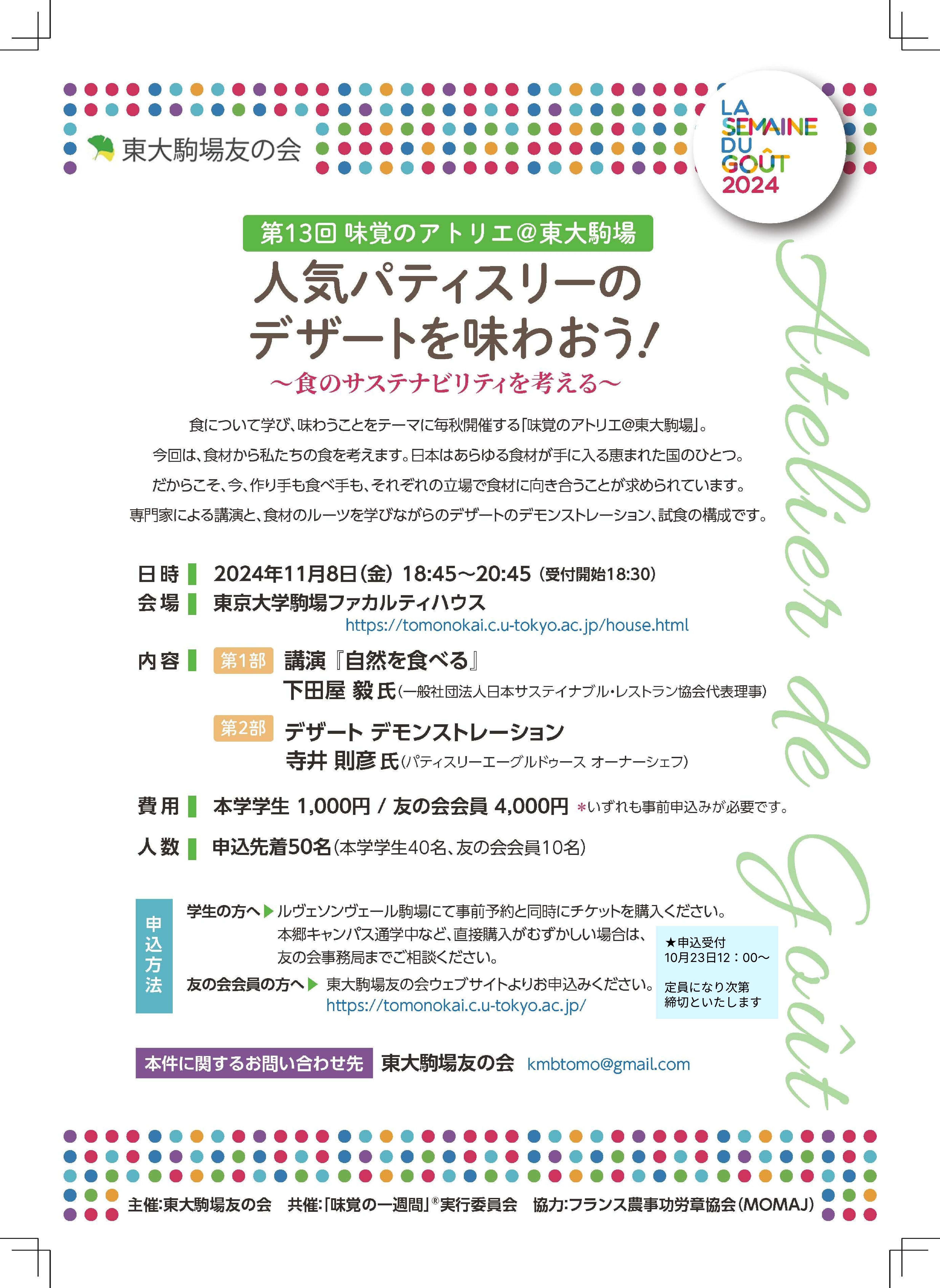 味覚のアトリエ@駒場 11月8日(金)開催のご案内(会員・本学学生限定)